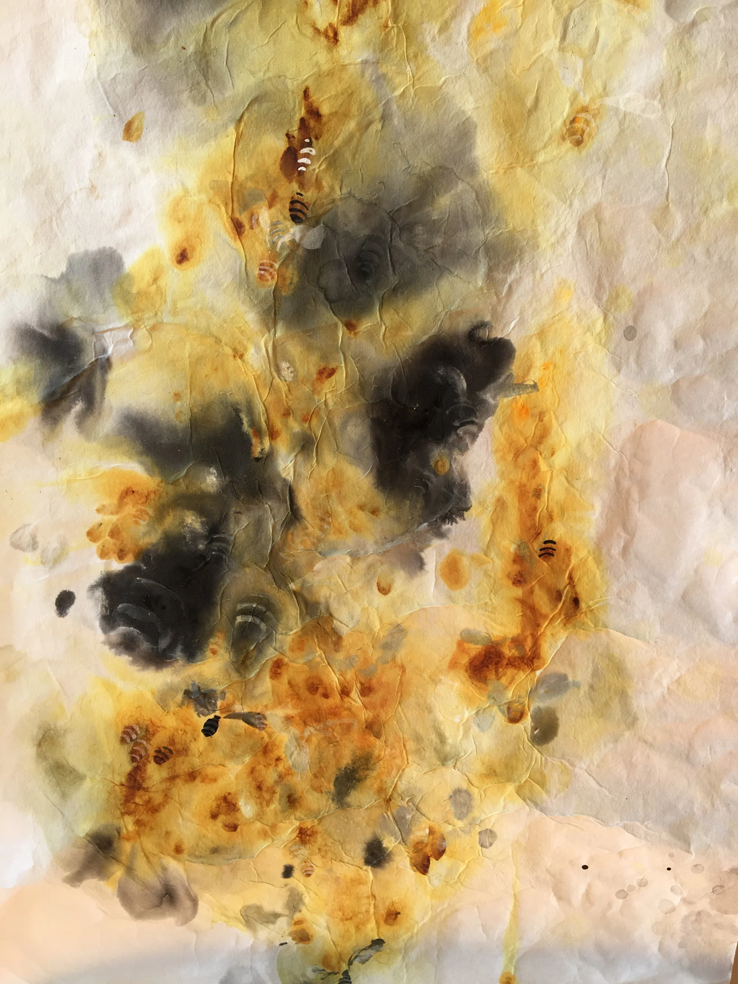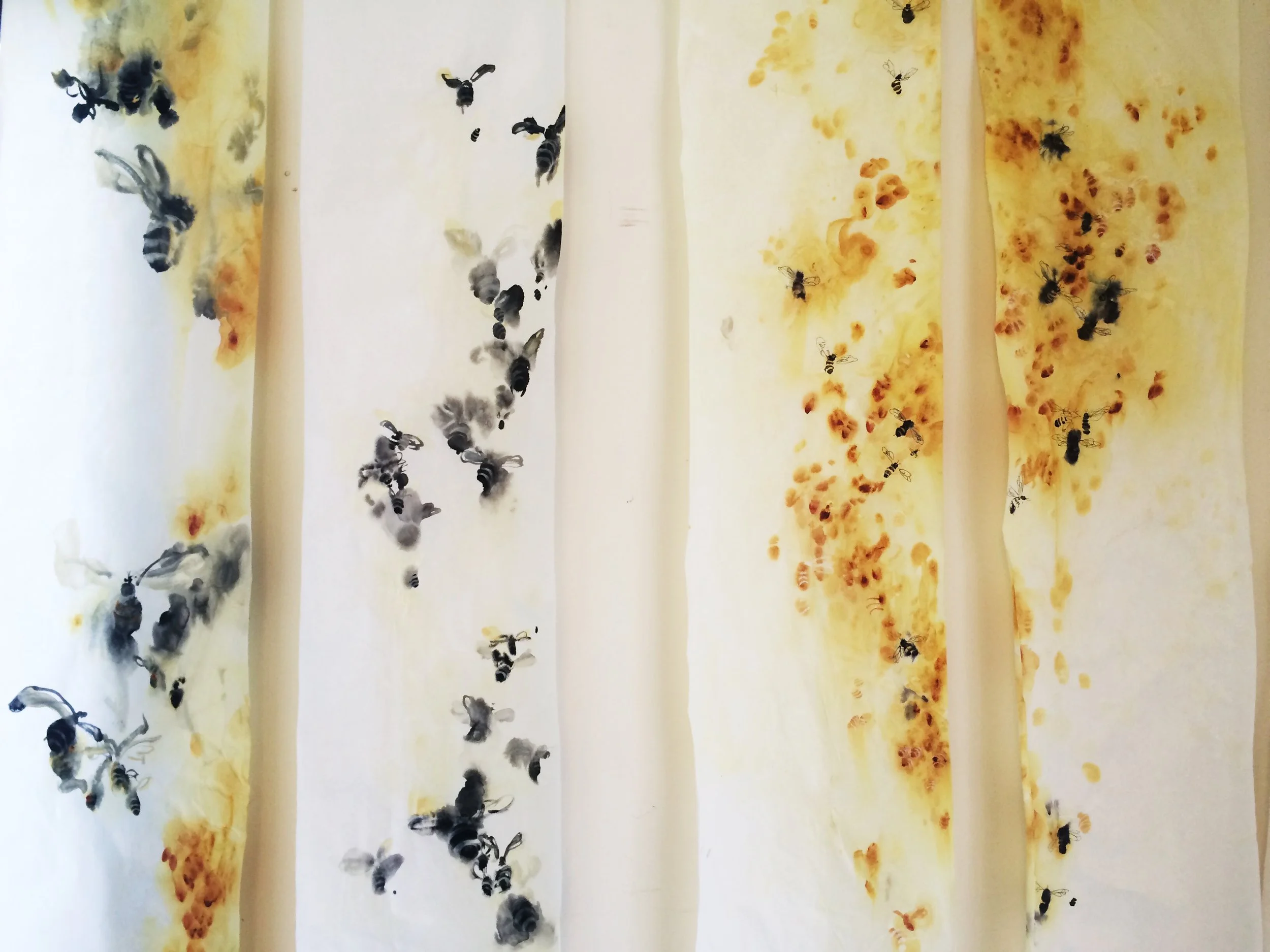 (above right) Detail from Feral Bees, -honey-based watercolor and ink on handmade paper scroll